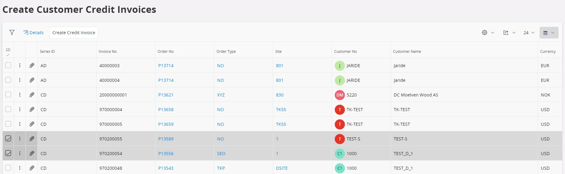 If you want to create multiple credit invoices for debit invoices, it can be done manually through create customer credit invoices window.