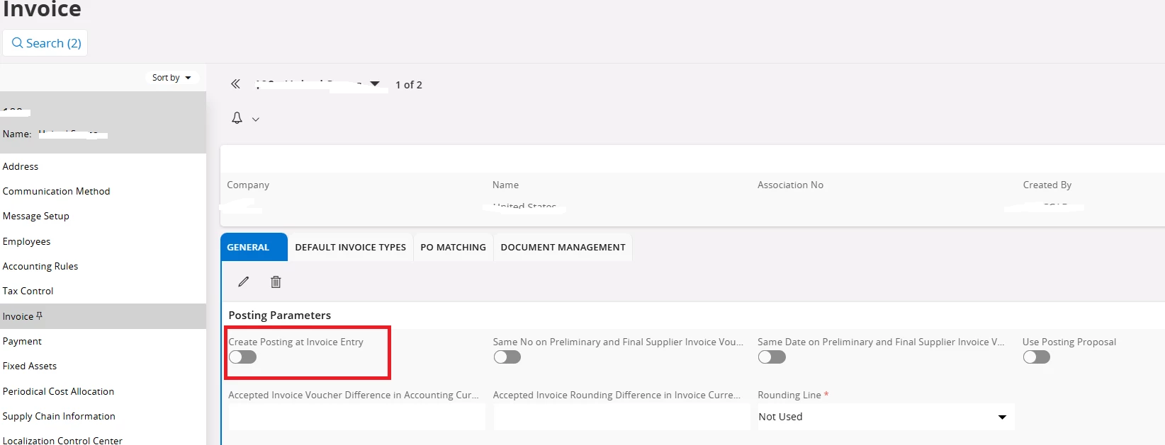 Note - We disable the ‘Create Posting at Invoice Entry’ toggle. If we enable this toggle, it’s getting posted without an issue. However, customer doesn’t need to enable this toggle as they want to perform ‘Post Invoice’ function for invoices receiving from external suppliers.