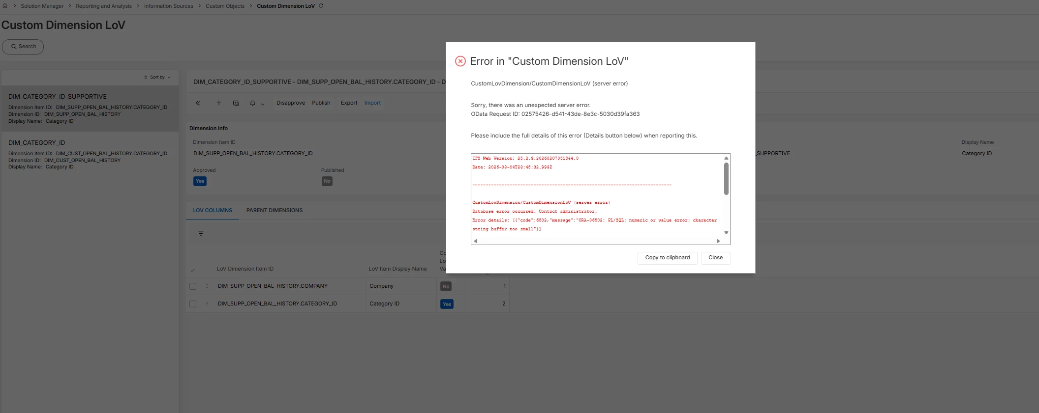 CustomLovDimension/CustomDimensionLoV (server error)