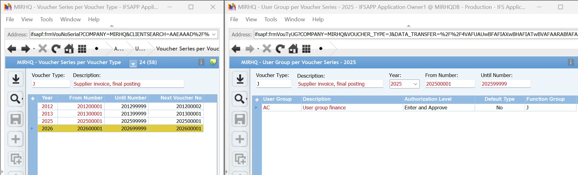 During year-end setup, a voucher series was created for all voucher types, following previous practice.