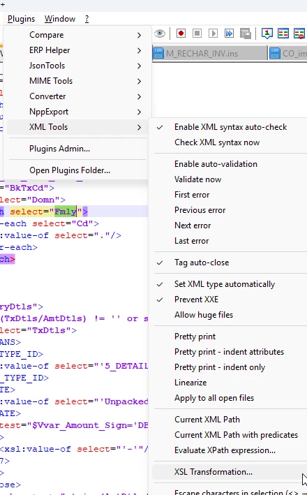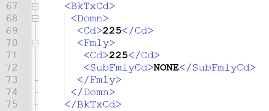 In this example, in the xml file I have message code “225” Supplier Payment and “249” Bank Fees.