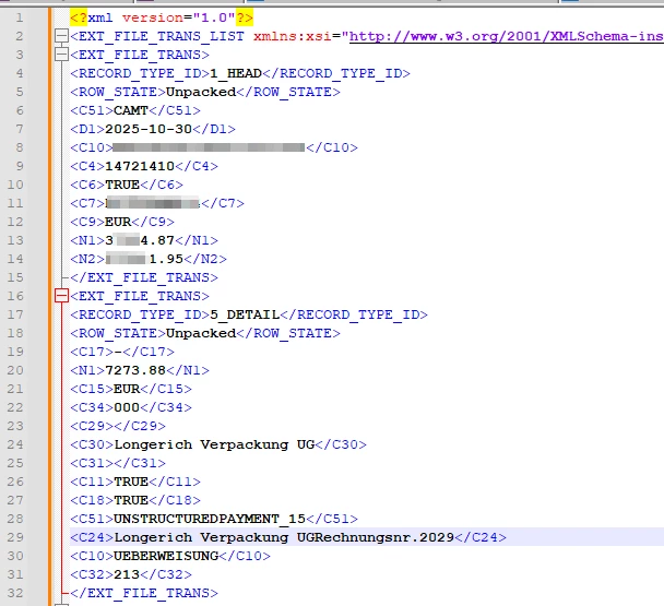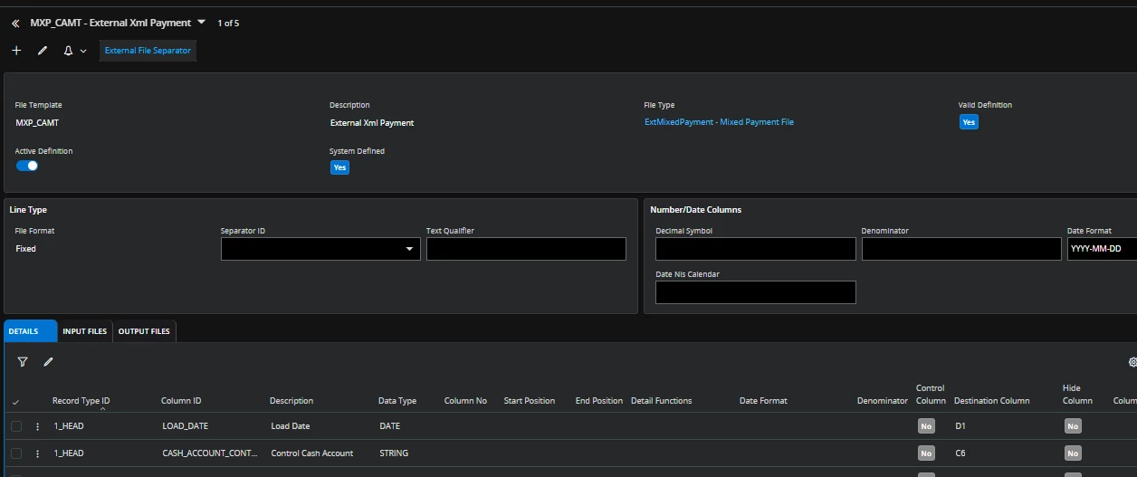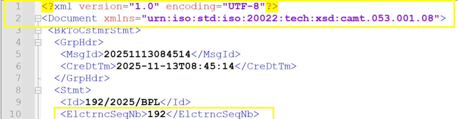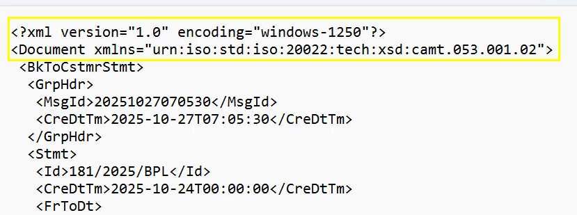 I am trying to load a bank statement in CAMT.053 format into 25R1 Cloud DEV environment.