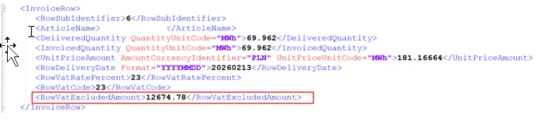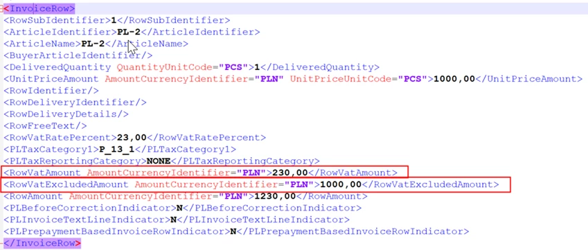 For the reported scenario, there is no specific Polish e-Invoice related functionality. The only specific, Polish e-Invoice related functionality when loading Supplier E-Invoice in XML is in connection to prefixes of Tax ID Number of company and supplier. Loading of amounts is handled in standard way.