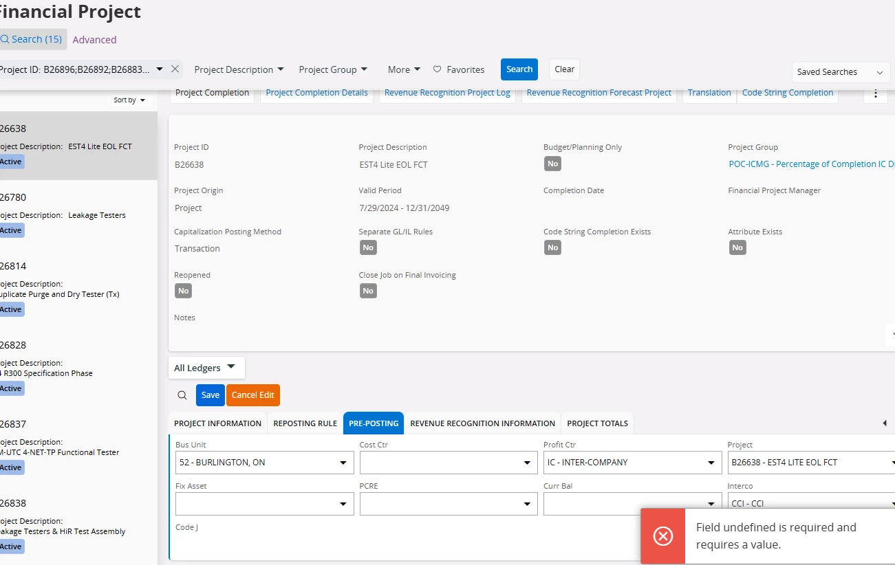 I keep on getting this error when I try to add the Interco. This is just a prep-posting and the code part value exists so I do not know why it is erroring. This is preventing us from posting revenue recognition. I would really appreciate any assistance or thoughts on this.