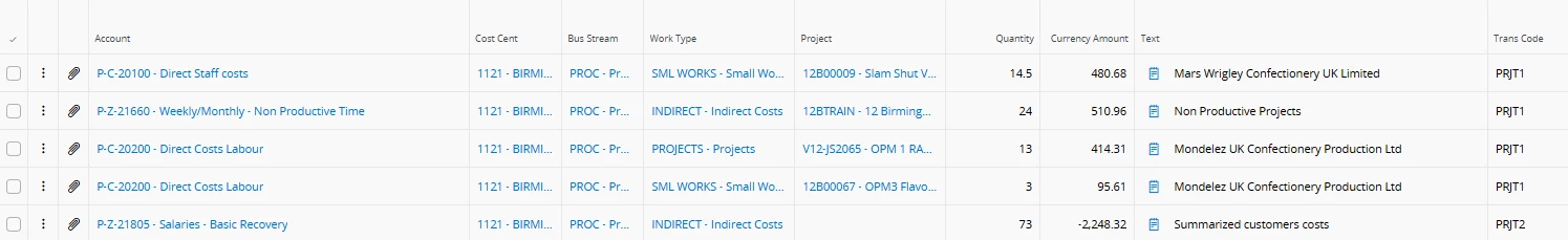 Project Time Transactions are creating a T Voucher in the General Ledger. The Voucher Row for PRJT2 is being summarised and shows as a single line with the description “Summarised customers costs”. Is there a way to show the detail. Same is happening for PRJT13.