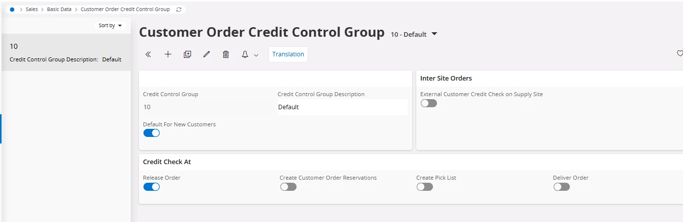 Then because this is customer order related, you need to make sure the customer has an appropriate credit control group. The credit control group identified at what steps in the customer order flow testes for credit. If you don’t have a credit control group on the customer, it’s not tested for credit furthermore if a credit control group includes no credit tests, that would also skip credit tests. Credit control group is a basic data, but the value on the customer / order data area sub tab is the value reviewed for the credit testing.