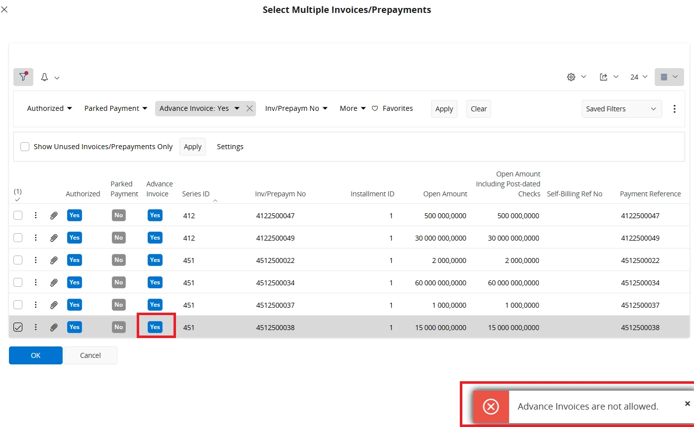 We have a parked payment (CUPOA) and would like to apply it to an advanced invoice. Can we do this via customer offset? Or should it be done some other way?