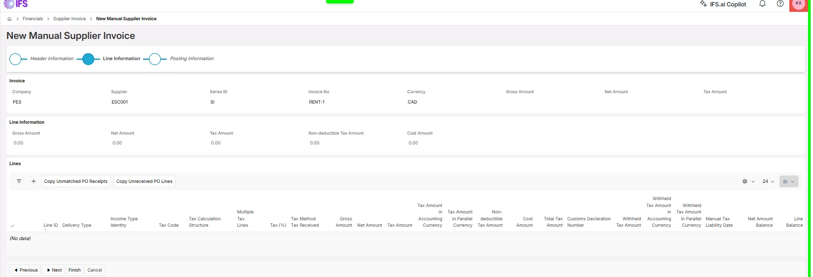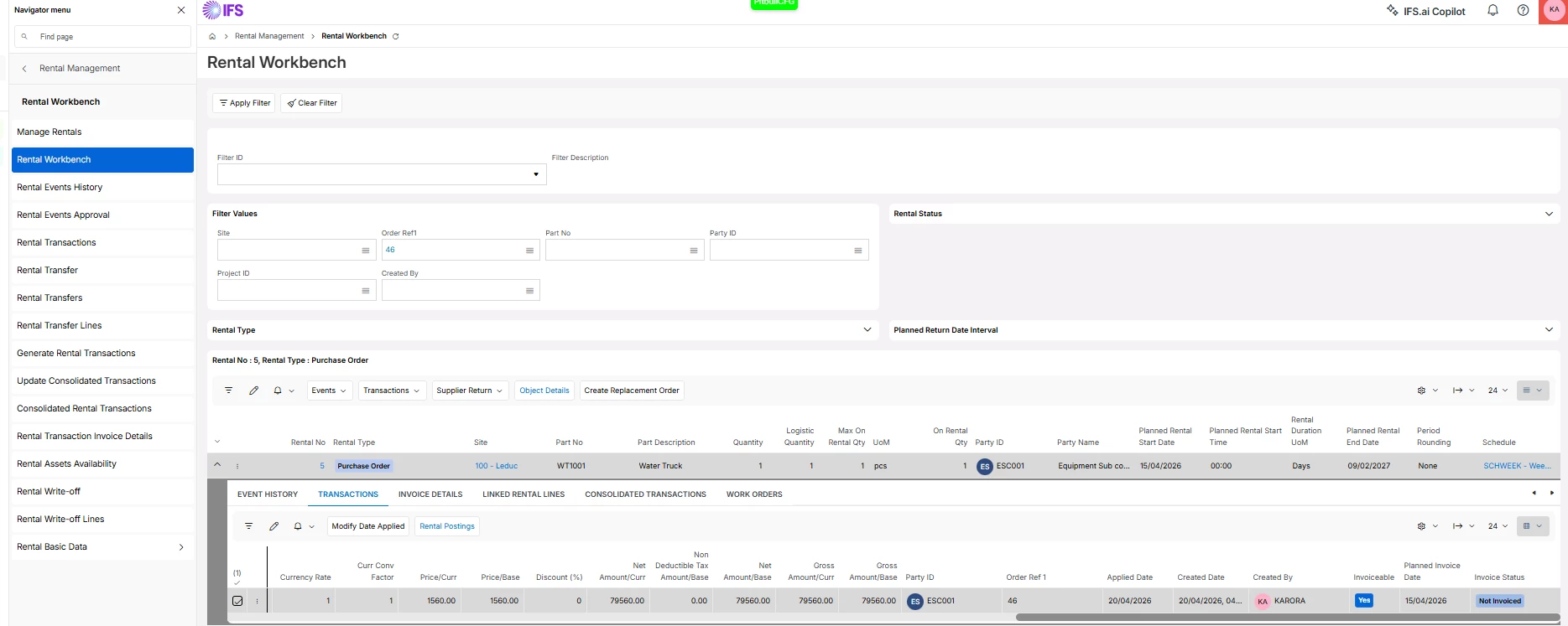 However, when trying to match supplier invoice, this rental transaction does not appear. Also, when trying to post this transaction using “Post Rental Transaction”, this does not get posted.