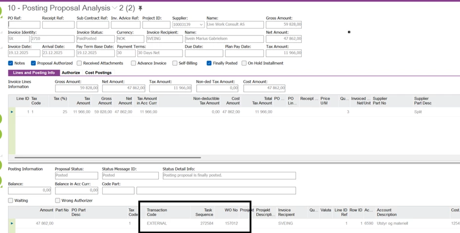 When you have transaction code external on an invoice, the cost does not come through, works fine with transaction code MANUAL and M93. Is there a basic data setup that is missing?