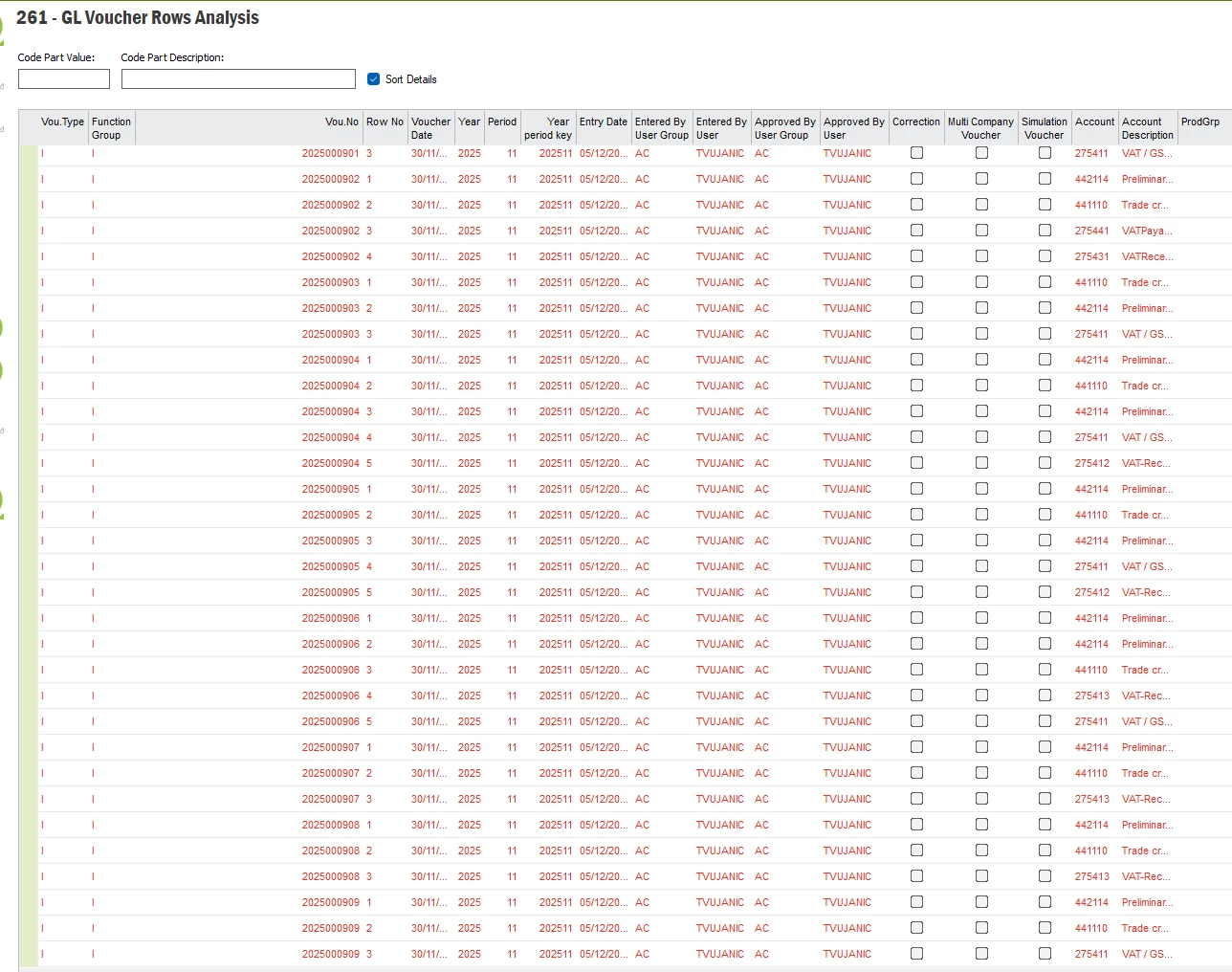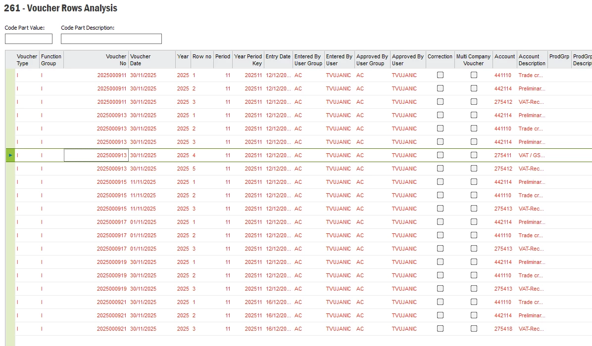 Vouchers created a week later, 12/12/2025, suddenly started at 2025000911 going to 2025000913 skipping one number. This happened until 2025000919.