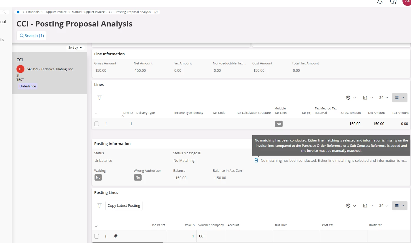When we enter a supplier invoice for it, no matching occurs and we are not sure why. I would greatly appreciate any thoughts on what the issue could be or any suggestions on how to resolve.