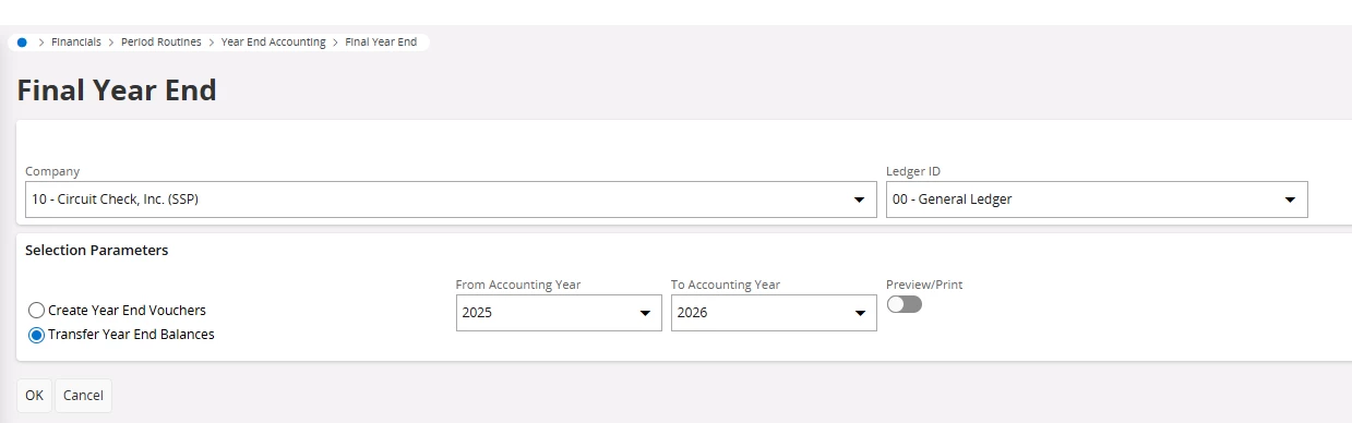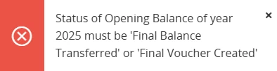 Preliminary year end and Clear Revenue/Cost Balance were performed for 2025. But when we try to perform Final Year End below, we get an error.