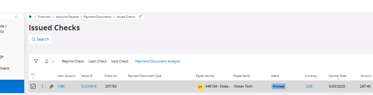 We have a check which was cashed in July which we then set back to printed status and now want to void it.