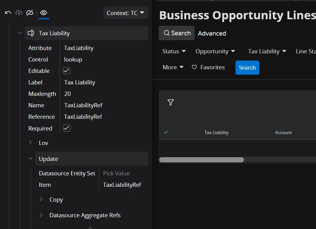 I want to put default value = Tax on Taxliability field in Business Opportunity lines but I don’t find Default value set up in Page designer. I have seen and done it on some other fields on other pages but I don’t find it in this case. Does someone know if there are other options to fix it?