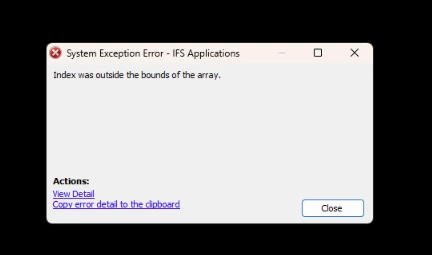 Ifs.Fnd.FndSystemException: Explorer: An Unhandled Exception has occurred ---> Ifs.Fnd.Explorer.Interfaces.FndFeatureNotFoundException: Navigation target is not to be found in the dictionary