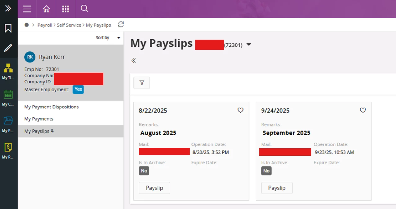 IFS VM payslips web page: