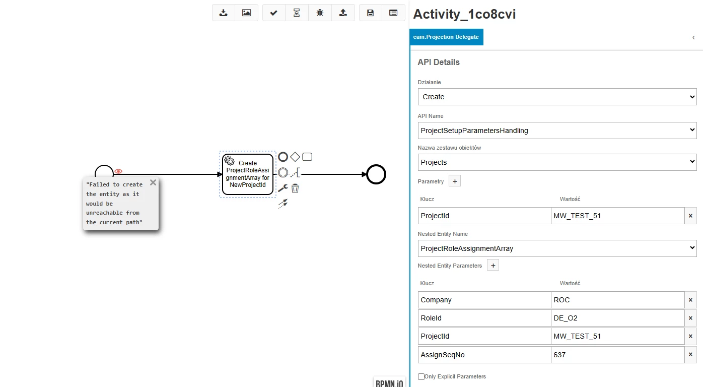 I’m facing an issue while Creating a new item in ProjectSetupParametersHandling/Projects/ProjectRoleAssignmentArray via an IFS API call in a workflow.