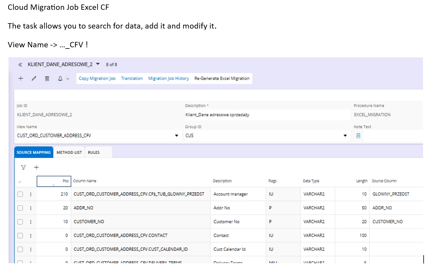 I would like to use a migration job targeting the view CUST_ORD_CUSTOMER_ADDRESS to insert/update this field.