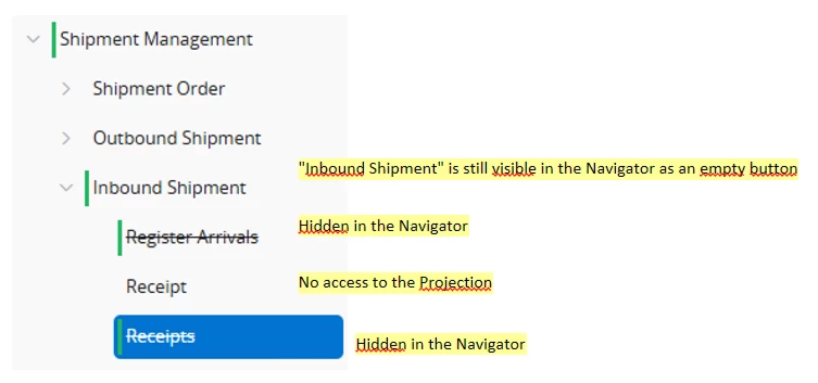 The reason why we do this is that some items should be hidden for All users, but some items should be available and visible if you have access to that projection/page.