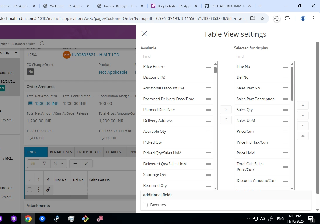Same for the Purchase Order Lines tab also here i am able to add 234 fields only if I’ll add more than 234 than this issue is coming.