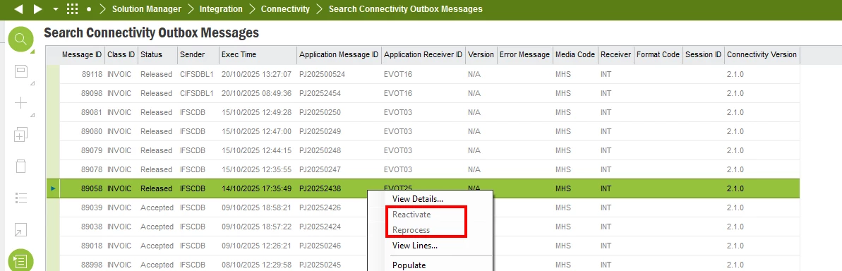 Why are outbox messages stuck in Released Status ? | IFS Community