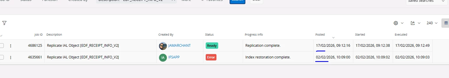 Table was recreated empty due to error [ORA-20105: IalObject.ERRDIMSQL: Error when executing statement. Reported error is "ORA-04061: existing state of has been invalidated"]. Redo replication manually ORA-20105: IalObject.REPTABEMPTY