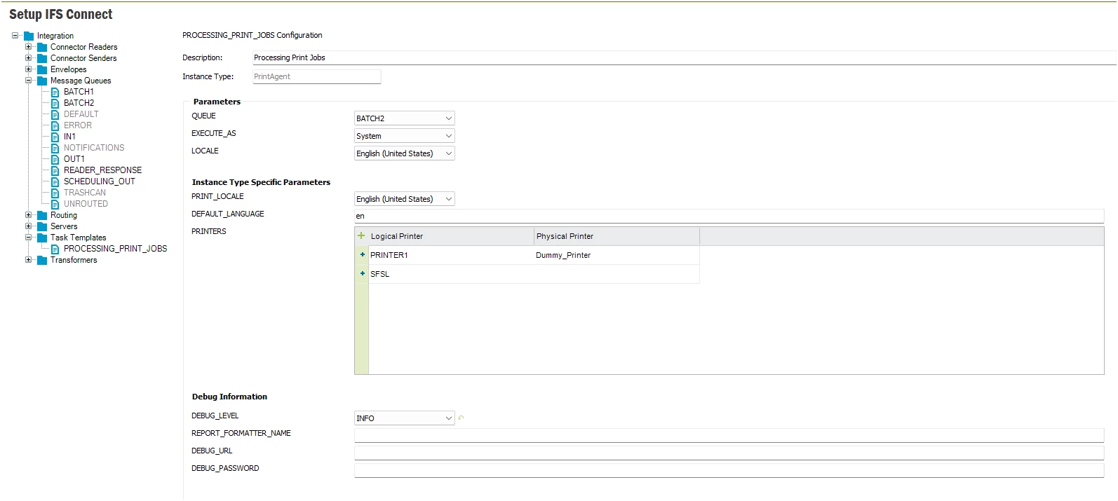 If you take a look in the ifs-printagent-config.xml file in the Print Agent location, my guess is that you don’t have this Logical printer included, with no Logical to Physical printer mapping defined.