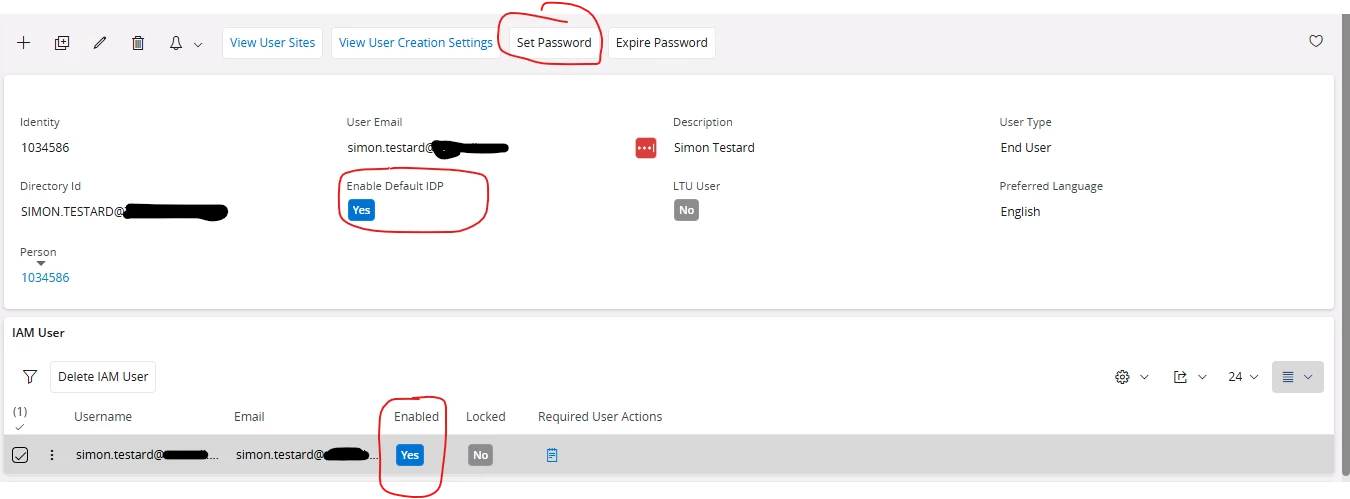 Enable Default IDP must be set to true, then click “set Password” at the top (which is the password for the default IDP connection, not anything to do with single sign on).