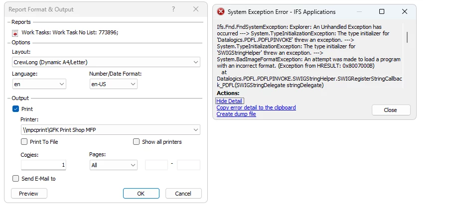 We’ve identified an issue this morning affecting import/export actions in IFS, such as downloading document attachments from purchase orders. When users attempt to save a file to their local machine, the IFS client crashes and closes. We’ve tested this across multiple user devices, and the behaviour is consistent.