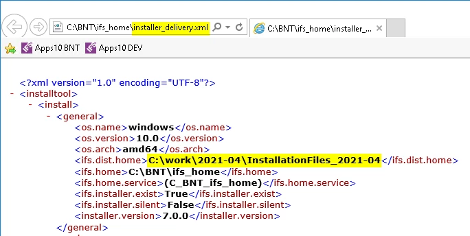 When running in delivery mode (Install delivery option), installer_delivery.xml and <instance>_configuration_delivery.xml will be updated.