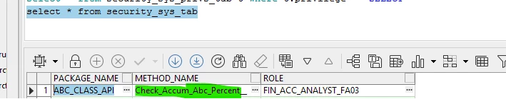 SELECT grantee FROM security_sys_privs_tab WHERE table_name = package_ AND grantee IN (SELECT role FROM fnd_user_role_runtime_tab WHERE identity = fnd_user_)