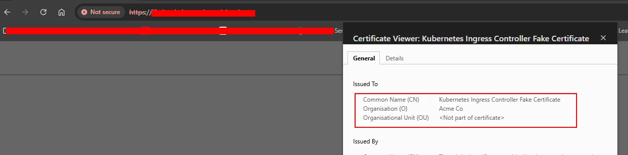 Currently, we are trying to enable public access to the application. However, when accessing it from a local machine, the URL is showing as unsecure, and the certificate CN is different—the one listed belongs to the ingress.