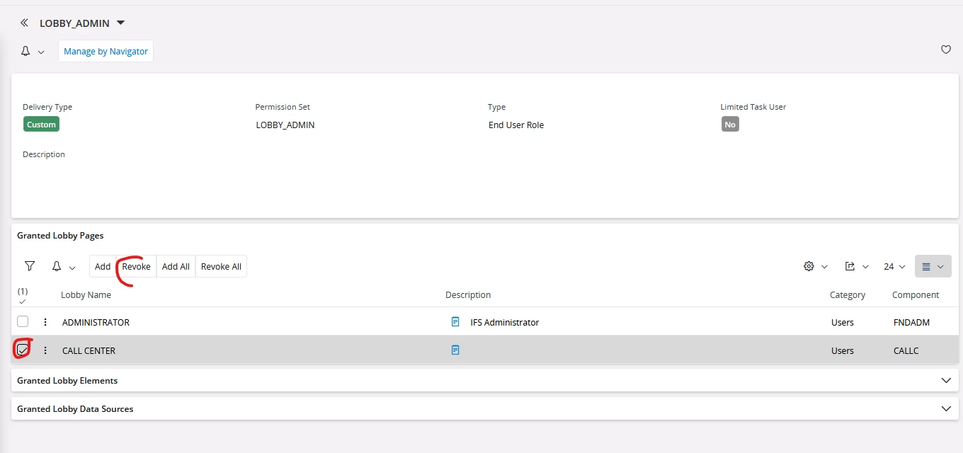 I can see revoke all button even if I select 1 lobby and if I click the “Revoke All” button, whatever lobby I added for the permission set, it is revoking all.