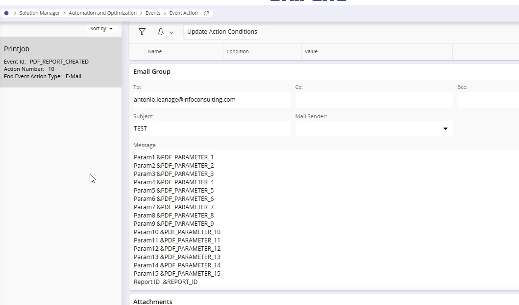 I had some issues with the PDF_REPORT_CREATED functionality(the parameters were not being identified) and this is why I switched over to using the Report Rules.