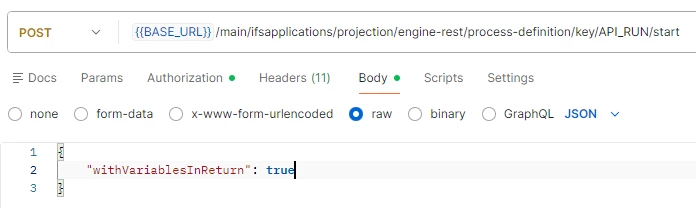 main/ifsapplications/projection/engine-rest/process-definition/key/BPA_NAME/startAnd in the body of the API, I pass it the property: