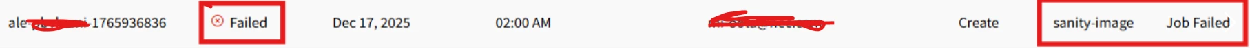 When applying 25R2 in the Manage Release Update, the following error occurs in the Sanity build.