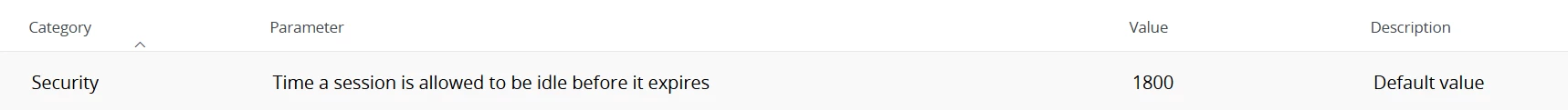 If a user remains inactive for longer than the 'Session Idle' timeout, their user session is invalidated. In IFS Cloud 25R1, the system parameter ‘Time a session is allowed to be idle before it expires’ is configured as follows: