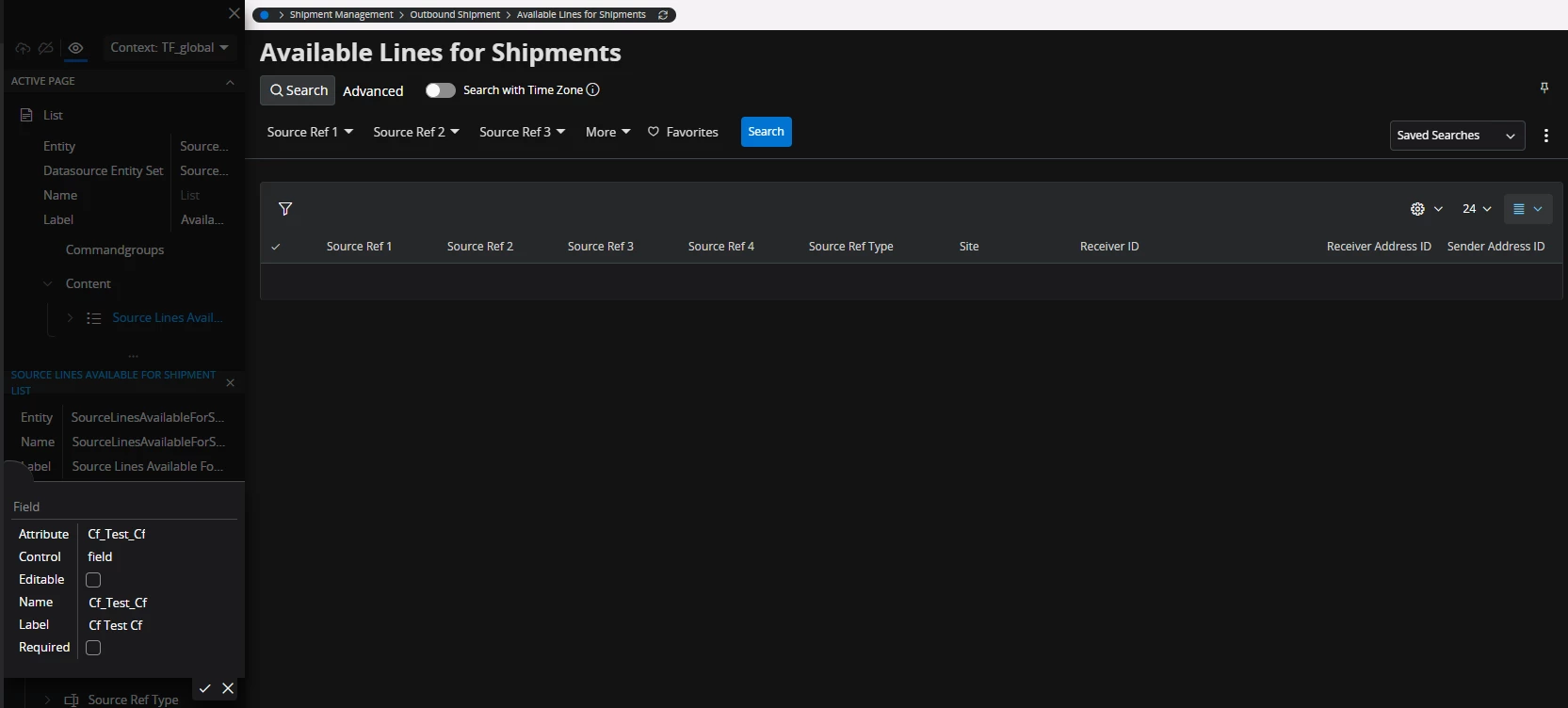 I tried to add Custom Fields to the SourceLinesAvailableForShipment, “Available Lines for Shipments” in the navigator.