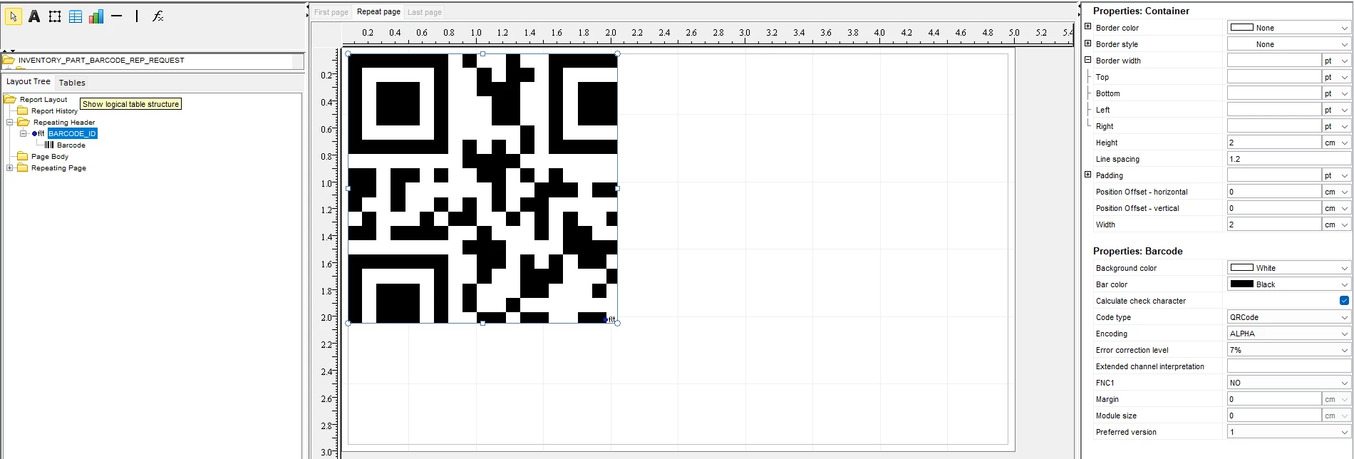 I am experiencing an issue with QRCode rendering in IFS Report Designer (version 21.1.1.0) on IFS Apps 9.4.