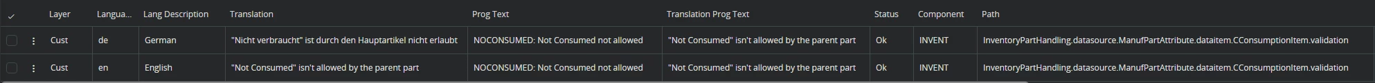 }The validation itself is triggered correctly, but the validation message always shows the prog text and is not translated, even though the corresponding translation entries exist.