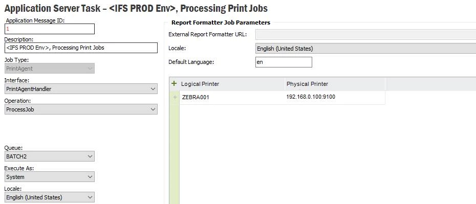 IFS Print Agent was enabled; the mapped Zebra Printer can print the report which designed by Report Designer;