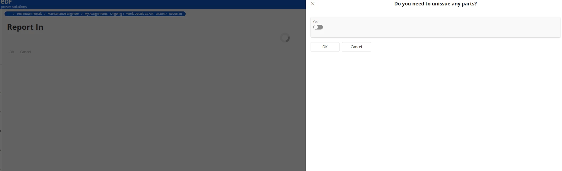 We’ve got a pop up to appear that asks the question, if the select Yes, that’s fine… continue to “Report In.”