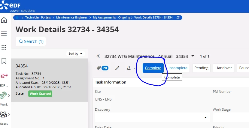 So we want to prompt the user if they have done something before they complete their work assignment.