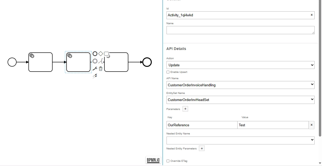 I'm trying to update a value in an invoice, but it's not working. For testing, I hardcoded the Company and InvoiceId values.