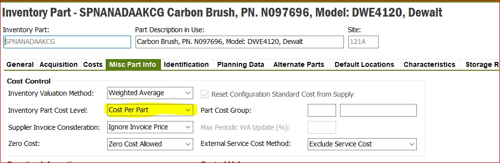 the costing team want to change the cost level to be “Cost Per Lot Batch” , and the mentioned part have a balance in the inventory.