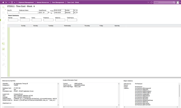 I have a small query in getting data from the screen in Cloud, I am working on upgrade project were we need to uplift/upgrade all the custom menus from APP 10 to cloud, in that process, I am facing an issue with this Time Card screen