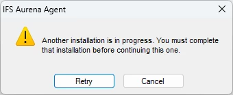 I am able to install the IFS Aurena Agent extension in Google Chrome but not in Microsoft Edge. When running the installer I’m receiving error message “Another installation is in progress. You must complete that installation before continuing to use this one.”