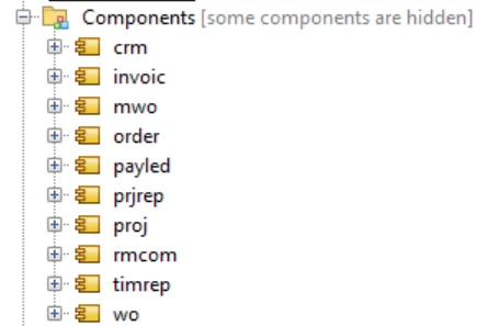 I cloned the codebase for a customer solution and the related core files through IFS LEC. When open it in the IFS Developer Studio, some components are not visible in that project.