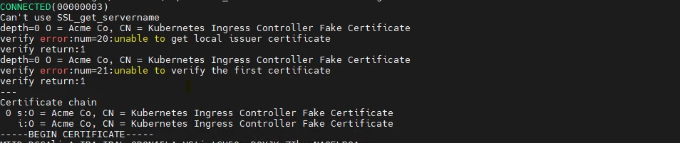 issuer=O = Acme Co, CN = Kubernetes Ingress Controller Fake Certificate