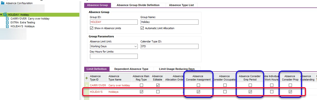 If this check box is selected absence limits are presented proportionally to the employment period.